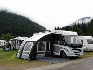 Pitching proved interesting as we took two attempts to find a clear facing south easterly pitch for the Sat TV to work without problems.